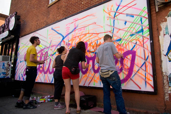 - Intervenção colaborativa proposta pela artista Maya Hayuk durante a ação NYSAT