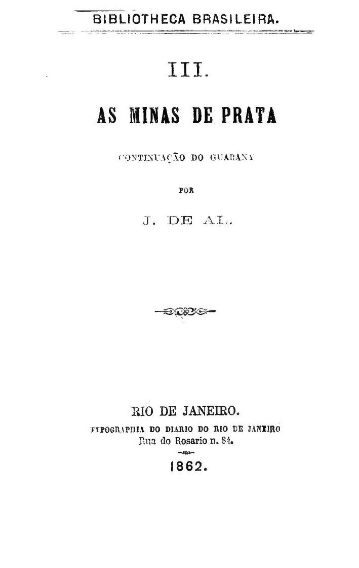 ALENCAR, José de. As Minas de prata. Bibliotheca Brasileira. Vol. III. Rio de Janeiro: Tipografia do Diário do Rio de Janeiro, 1862.