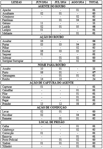 - QUADRO 1 - OCORRÊNCIAS DE LEXIAS 1914
