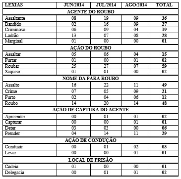 - QUADRO 2 - OCORRÊNCIAS DE LEXIAS 2014