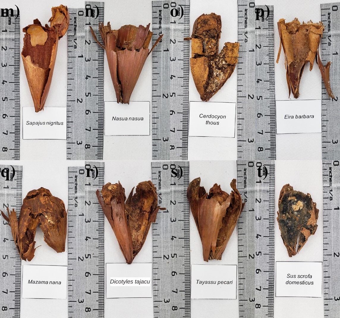 Antunes, A. C., Baccaro, F., & Barnett, A. A. 2017. What bite marks can tell us: Use of on-fruit tooth impressions to study seed consumer identity and consumption patterns within a rodent assemblage. Mammalian Biology, 82, 74–79. DOI:10.1016/j.mambio.2016.11.009
