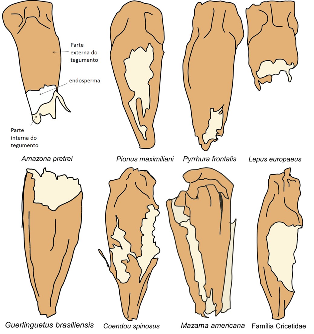 The Parana pine (Araucaria angustifolia (Bertol.) Kuntze) is a relictual conifer of the Araucariaceae family. It is considered a key species for the fauna, as it provides resources in a period of food shortage. The pinhão, which is called the seed of the Parana pine, constitutes the only means of propagation of the species. Because it is large and heavy, and it depends on the dispersion being carried out by animals. Which, in their turn, also consume and prey it a large part of the seeds produced annually. However, direct observations of interactions between animals and seeds were rarely recorded, either because of the complexity of finding them in forest environments or because of the logistical complexity of recording those interactions. A viable way to monitor the interaction of these animals with the diaspore would be the use of traces and residues of the seeds. Considering the importance for the fauna and the knowledge gap, the objective of this work was to present a detailed description of the pinhão predation patterns by different species of birds and mammals that use it as a food source, and to present an illustrated dichotomous key to be used as a guide in future studies. Thirty-eight patterns of predation of the Parana pine seed among birds and mammals were described, demonstrating the potential use of the predation pattern to identify consuming species as well as in animal-plant interaction studies. Considering the endangered status of the Parana pine, studies related to predation and zoochory of its seeds can help to understand the role that interactions play in the conservation of this conifer.