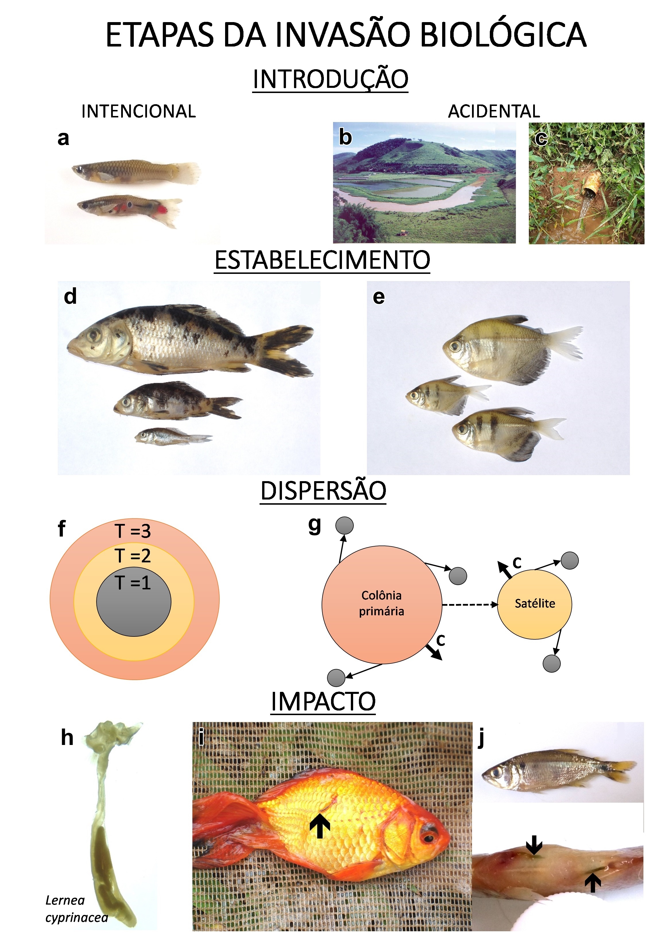 NON-NATIVE FISH IN BRAZILIAN STREAMS: STATE OF THE ART, GAP OF KNOWLEDGE AND PERSPECTIVES: Biological invasions are among the main causes of biodiversity loss on planet. Losses are accentuated in streams, which are sensitive to human impacts, since they have specialized fauna and higher degree of endemism. Despite this, studies on invasions by non-native fish in streams are incipient in Brazil. In this review, we present an introduction on the process (i.e., stages) of biological invasion, the environmental factors that influence the establishment and the impacts of non-native species in streams. A methodological step-by-step is also presented as a way to guide the conduct of studies on non-native species in Brazilian streams. In addition, management actions measures are presented to prevent new cases of introductions and suggestions for studies on invasions in streams. Avoiding propagule pressure and environmental education, as well as legal aspects of Brazilian legislation, are management actions that can prevent new introductions. Finally, gaps in knowledge and perspectives are raised as an incentive for interested parties to enter the subject and develop new studies on non-native fishes in Brazilian streams.Downloads