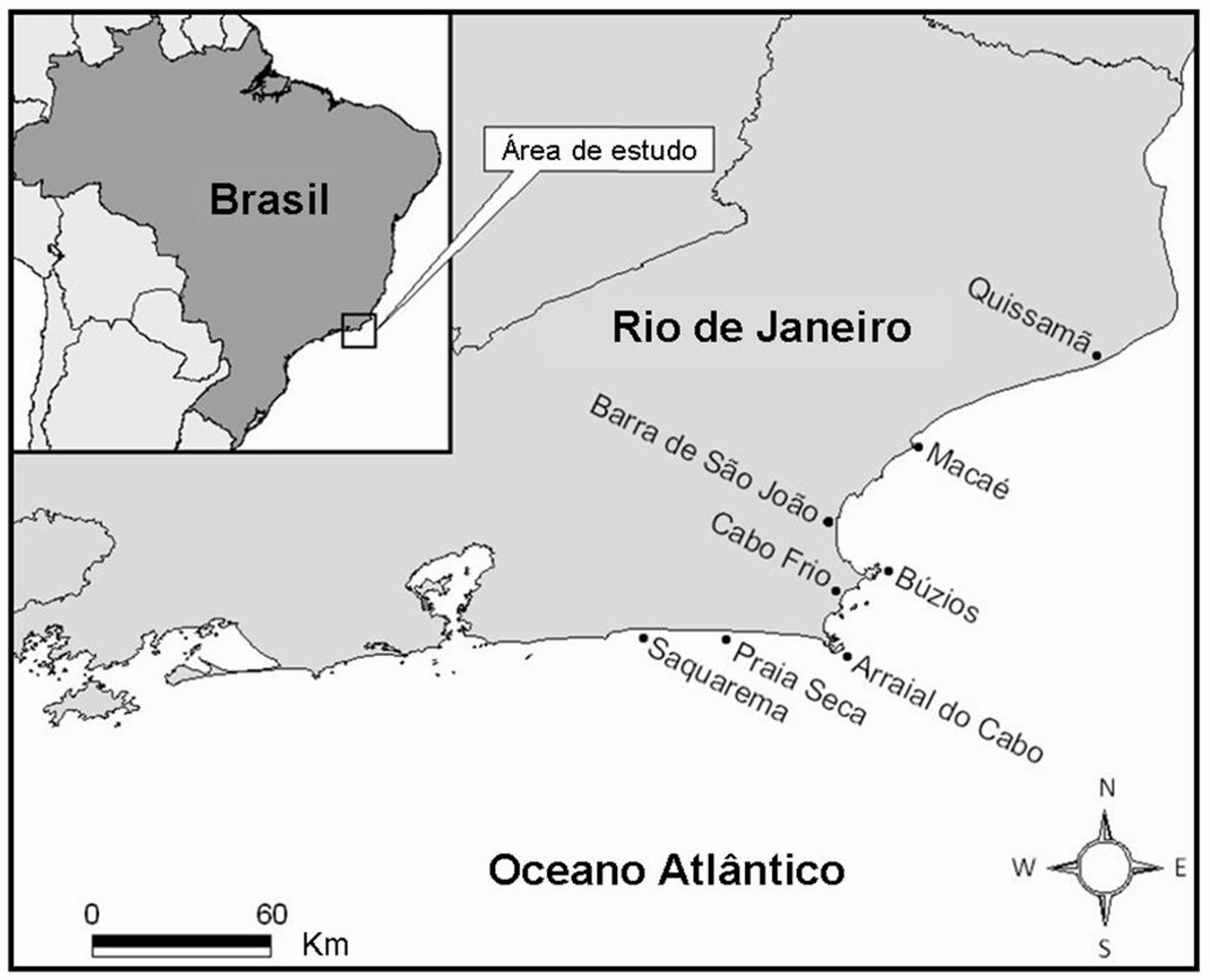 HEALTH STATUS OF SEA TURTLES FROM THE CENTRAL-NORTH COAST OF RIO DE JANEIRO STATE, BRAZIL: EVALUATION ABOUT THE PRESENCE OF BACTERIAL AGENTS, FIBROPAPILLOMATOSIS AND INTERACTION WITH ANTHROPOGENIC DEBRIS. In Brazil, there are five species of sea turtles, commonly known as loggerhead (Caretta caretta), green turtle (Chelonia mydas), hawksbill (Eretmochelys imbricata), olive ridley (Lepidochelys olivacea) and leatherback turtle (Dermochelys coriacea). All are considered endangered under national and international criteria. Human action has caused many impacts on marine ecosystem and threatened its biodiversity. Several microorganisms inhabit this ecosystem and are able to cause infectious diseases. Therefore, marine environment changes contribute to the emergence of diseases, such as fibropapillomatosis in sea turtles. The ingestion of solid anthropogenic debris is another important menace to many marine organisms. In this context, the present study aims to investigate the presence of bacterial agents of the Vibrionaceae and Aeromonadaceae Families, the occurrence of fibropapillomatosis, and the interaction with anthropogenic debris in stranded sea turtles found along the central-north coast of Rio de Janeiro state, and thus assess the health status of these organisms and their environment. For this, beach monitoring was made at intervals of 15 days along the study area by GEMM-Lagos / Oceanites staff in 2009. Sea turtles were identified at species level and checked for the presence of external tumors. Specimens, when fresh, were necropsied and gastrointestinal contents screened to evaluate the presence of anthropogenic debris. Swabs were also collected for bacteriological analysis conducted by LRNCEB / FIOCRUZ -- an innovative survey for sea turtles in Brazil. 143 sea turtles were found stranded in the study area, and only four of the 68 analyzed turtles had tumors. 44% of the 32 gastrointestinal contents screened had anthropogenic debris, indicating a potential cause of sea turtles' death in the region, specially of Chelonias mydas. 88% of swabs were positive for Vibrio and 53% for Aeromonas. Thus, sea turtles, as sentinels of marine ecosystem health, indicate the environmental degradation of the central-north coast of Rio de Janeiro state, prompting the need for urgent mitigation actions.