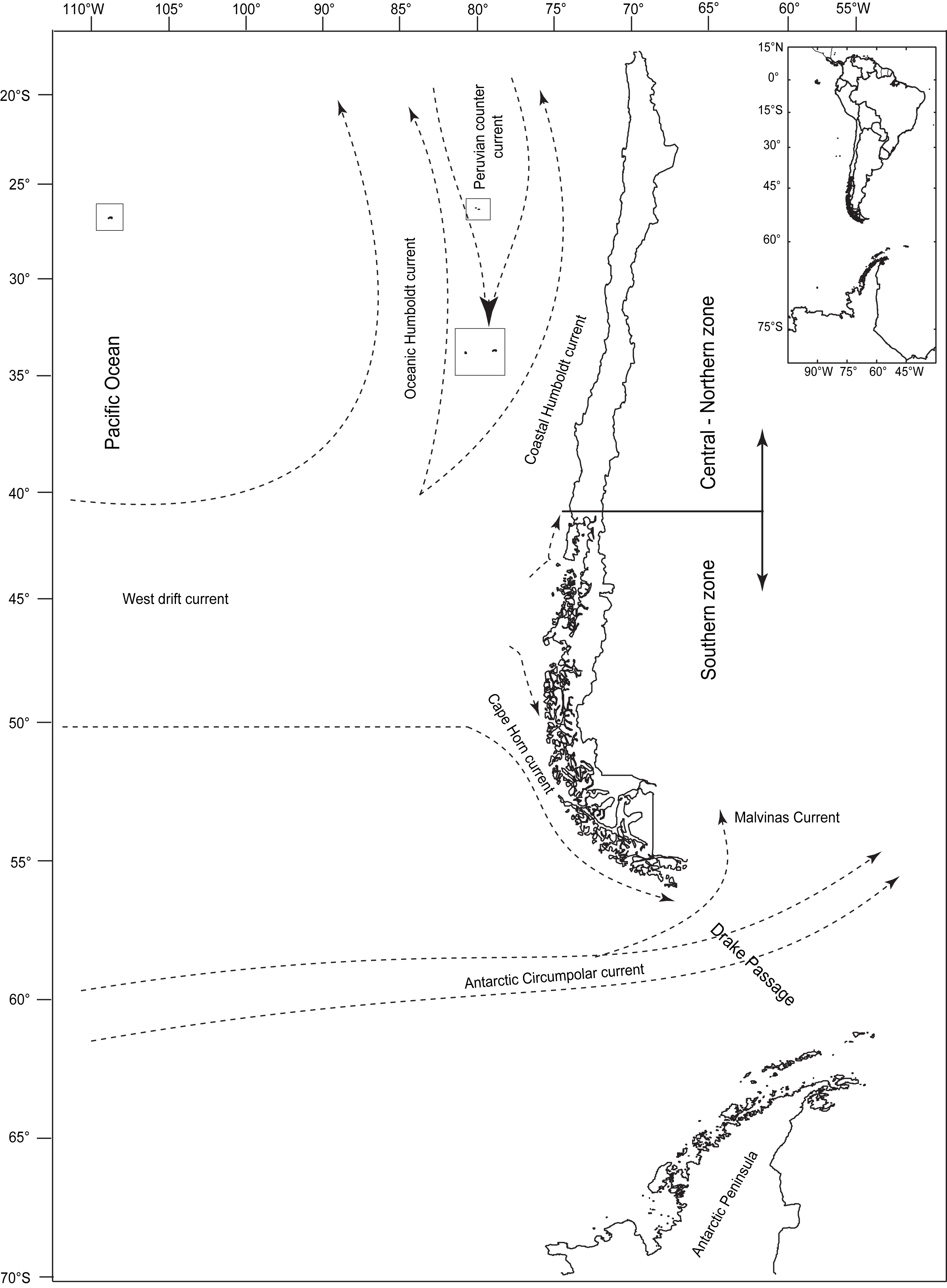 Sightings of 114 leopard seals, Hydrurga leptonyx, have been recorded along the Chilean coasts from 1944 to 2010. Mostly immature seals occurred in northern and central Chile (18°30´S-39°59´S), especially in winter, while immature and adult individuals of both sexes and in good condition were commonly sighted year-round in glacial areas of southern Chile, especially Tierra del Fuego (south of 53°43´S), suggesting that this Antarctic species can be consider as a regular member of the marine fauna of Chile, with occasionally hauling out on the northern coastline not as vagrants, but as seasonal transients. Keeping in mind data limitation, we discuss some ways of northern dispersion and the subsequent residence of some animals in the Southern region of South America. These include, respectively: the close proximity of the Fueguian channels with the Antarctic Peninsula facilitated by the northward extension of the Antarctic pack ice during winter and/or through the influence of the Malvinas current; and the suitable habitat of the Fuegian channels, with similar characteristics to the Antarctic environment and locally abundant food resources.
