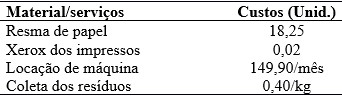 Introdução: Conceitualmente, um Hospital Universitário funciona através dos pilares: Assistência, Ensino, Pesquisa e Extensão. Sendo que a assistência está articulada com a ação social da Universidade no atendimento, tratamento e acompanhamento aos pacientes, gerando custos nos mais variados setores hospitalares. A Central de distribuição de equipamentos biomédicos (CEDEB) é responsável pela distribuição de materiais e equipamentos no hospital e faz o suporte ventilatório aos pacientes internados, o monitoramento deste serviço apresenta um custo relativo com impressos utilizados no dia a dia e que não são contabilizados. Objetivos: Registrar diariamente o consumo de impressos, durante um período de 12 meses na CEDEB. Métodos: É um estudo de caso em que foi utilizado o setor que realiza a distribuição e monitoramento de suporte ventilatório, que funciona 24 horas ininterruptas de um Hospital Universitário, onde os impressos (revisão, seme, controle e rdm) utilizados para o desenvolvimento deste serviço foram armazenados durante o período de 1 ano. Estes impressos foram separados e aferidos o peso mês a mês durante 12 meses. Resultados: Os valores registrados dos impressos durante este período foram: revisão (8.679kg), seme (2.744kg), controle (0,715g) e rdm (0,557g) com total de 12.695kg. Conclusão: Embora os valores apresentados não sejam representativos, esta é a primeira vez que se faz este tipo de registro levando em consideração aspetos relacionados ao consumo de papel, pois é uma tendência mundial a busca de soluções para diminuir o uso de papel como estratégia de reduzir a emissão de carbono.