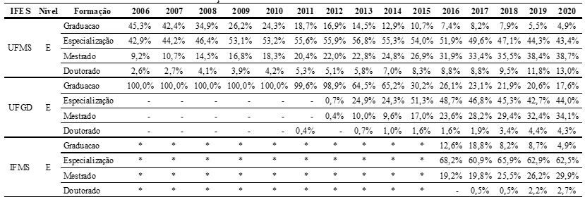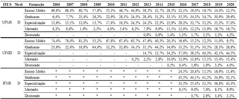 Esse texto objetivou analisar a implementação da política de qualificação aplicadas aos servidores técnico-administrativos em educação das instituições federais de ensino superior do Mato Grosso do Sul, bem como os reflexos no perfil e na evolução da formação profissional. Para tanto, foi realizado o levantamento das políticas qualificação e de relatórios referentes ao perfil de formação dos servidores técnicos níveis D (nível médio) e E (nível superior) entre os períodos de 2006 a 2020, junto às universidades, por meio do Sistema Eletrônico de Serviço de Informações ao Cidadão. Como principais resultados, identificou os incentivos estabelecidos nas normas das diferentes instituições e traçou o perfil de formação e evolução da capacitação dos servidores em cada organização durante os anos. Por fim, observou que a política implementada possibilitou o aprimoramento e a qualificação do servidor técnico-administrativo para o melhor desempenho de suas funções e desenvolvimento institucional.