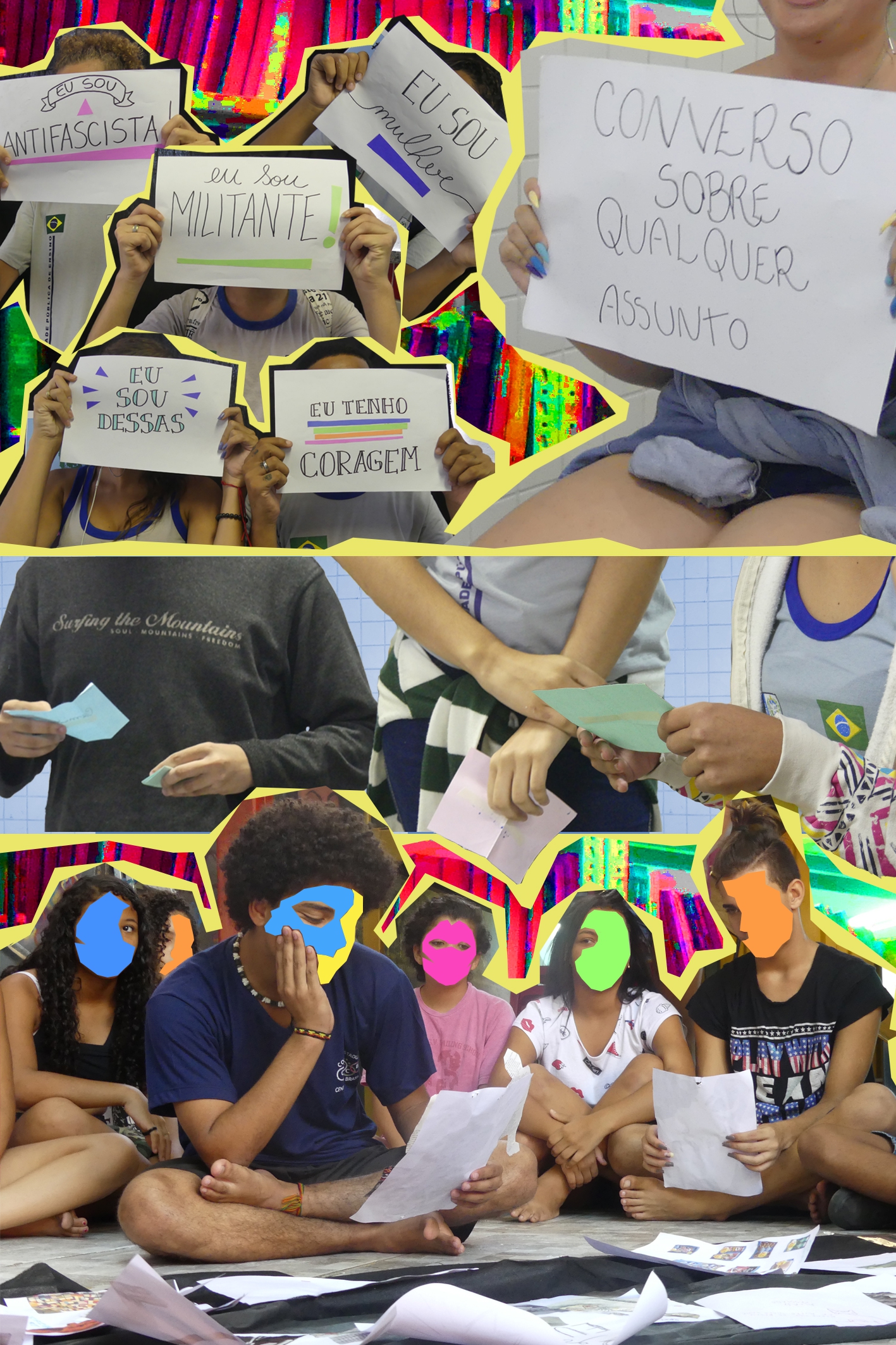 This photo shoot exposes a composition of graphic editions based on records of the activities of occupational therapy activities in the social field realized by the extension project “Juventude(S): Intervenções urbanas de arte-cultura no território” (in english: Youth(S): Urban interventions of art-culture in the territory). Presenting the initiative of the university extension project of the Occupational Therapy Department of Universidade Federal do Rio de Janeiro, the narrative describes its actors, proposals and actions carried out along the universe of meanings marked in the experience of professional and territorial formation. Juventude(S) project is now in a place to believe in aesthetic, artistic and cultural activities as powers of transformation and reaffirmation of oneself in the territory.