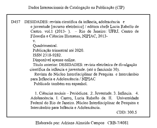 O título da revista DESIDADES Revista Científica da Infância, Adolescência e Juventude pode ser abreviado como DESIDADES.