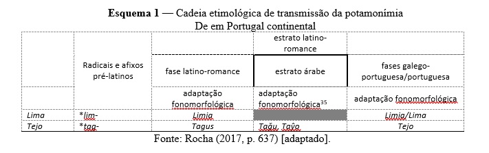 - Esquema 1 - Esquema 1 — Cadeia etimológica de transmissão da potamonímia em Portugal continental