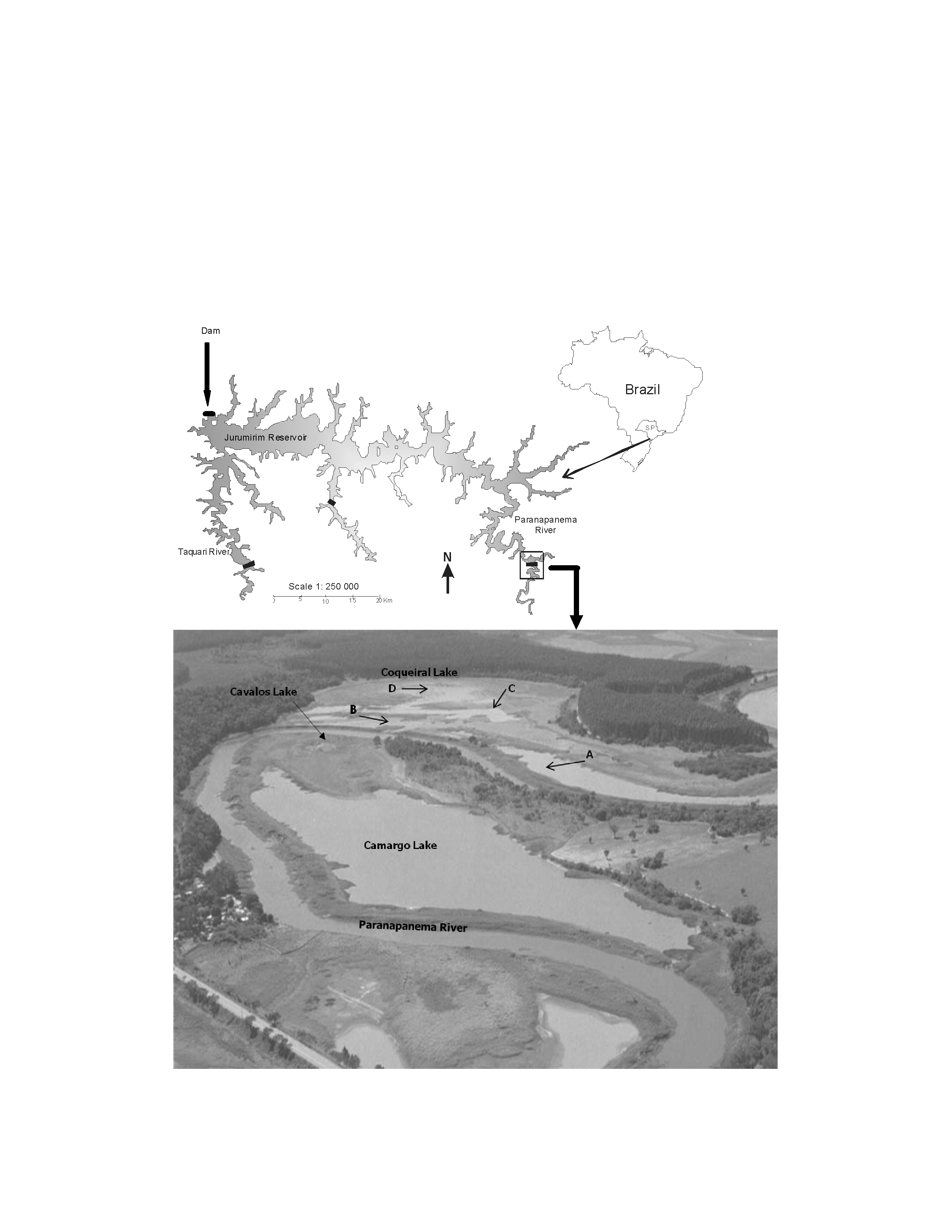 A descriptive analysis of the responses of plankton from lakes lateral to a river in its mouth zone into a tropical reservoir to water level variations is presented. Three situations were reported: 1) a comparison of species richness and diversity and of algae population abundance in prolonged drought and in periods of connection of lakes to the river, 2) the spatial distribution of abundance and richness of Rotifera species in four isolated water bodies formed by fragmentation of a lateral lake during a period of prolonged drought and in the same areas during a period of integrity as an ecosystem, 3) the variability of total zooplankton and Cladocera densities at the end of the isolation period of a lateral lake and after the recovery of connection with the river and in a year of continuous connection with the lotic ecosystem. Various idiosyncrasies were observed in connected lateral lakes, like the surface hydrologic connectivity, a primary factor in species richness modifications and a secondary controlling factor of plankton abundance. Underground hydrologic connectivity, through the river - lake water flux during the high-water period and lake - river during drought period, appears to have an important role in richness and abundance variations of planktonic populations in the lake isolated from the river.
